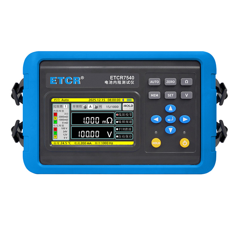 ETCR7540电池内阻测试仪采用4.3寸彩屏,仪表高档美观,量程宽广,分辨率高,操作便捷,携带方便,准确、可靠、性能稳定,抗干扰能力强。是电池生产、电池安装、设备生产、设备维修等场景必不可少的仪器。
