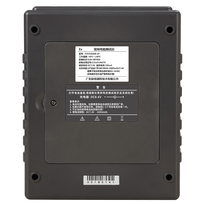 ETCR3000B防爆型接地电阻测试仪由主机、数据上传软件、测试线、辅助接地棒、通讯线等组成。主机超大LCD显示,白屏背光,棒图指示,一目了然。存储功能,存储300组数据,通过USB接口数据上传软件实现历史查询与在线实时监测功能,动态显示,告警指示,具有历史数据读取、查阅、保存、报表、打印等功能。