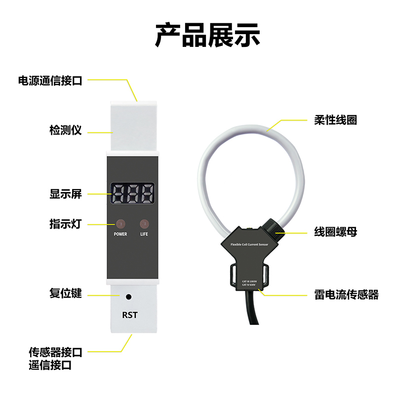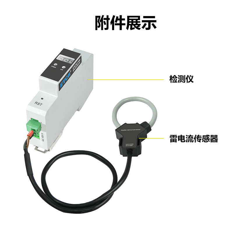 ETCR2700雷电流在线监测仪由主机与柔性线圈组成。主机使用标准35mm导轨安装方式。柔性线圈轻便柔软,安装极为方便,直径可按用户要求定制。