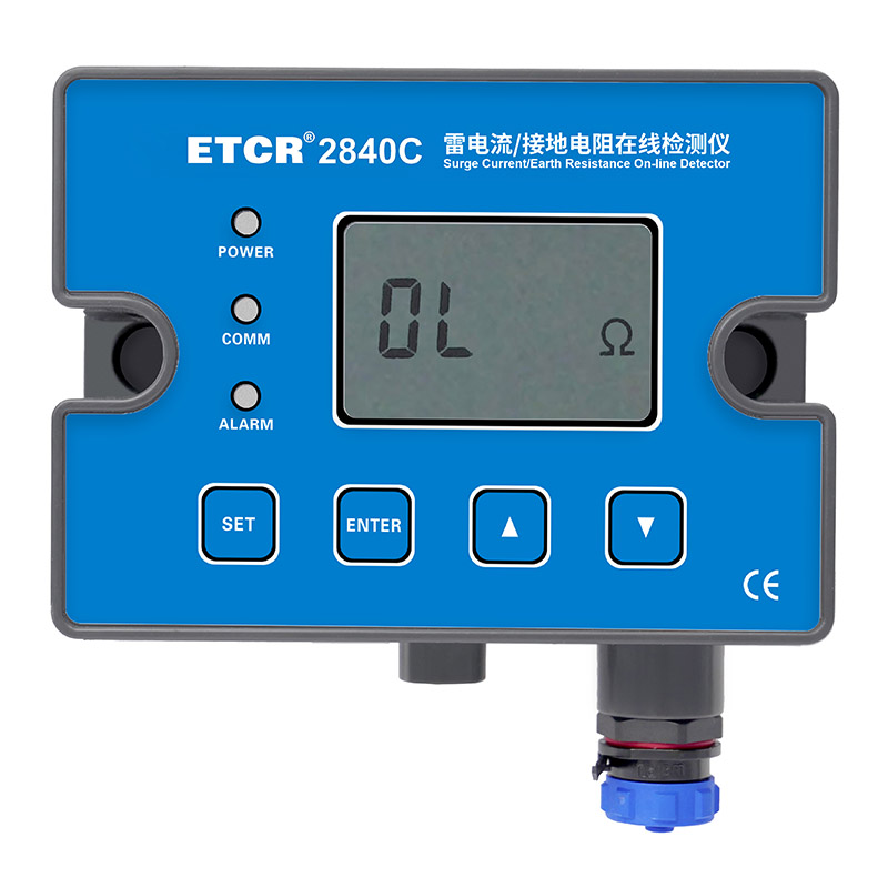 ETCR2840T雷击电流/接地电阻在线监测仪,检测仪安装在接地引下线上,能够实时、准确的监测到SPD 告警动作以及告警动作时间,雷击次数、雷击幅值,SPD告警功能极适合带有干结点输出功能的SPD设备,可以及时快速的监测SPD运行状态,并发出有效预警。检测仪同时实时监测接地电阻值、接地电流值。