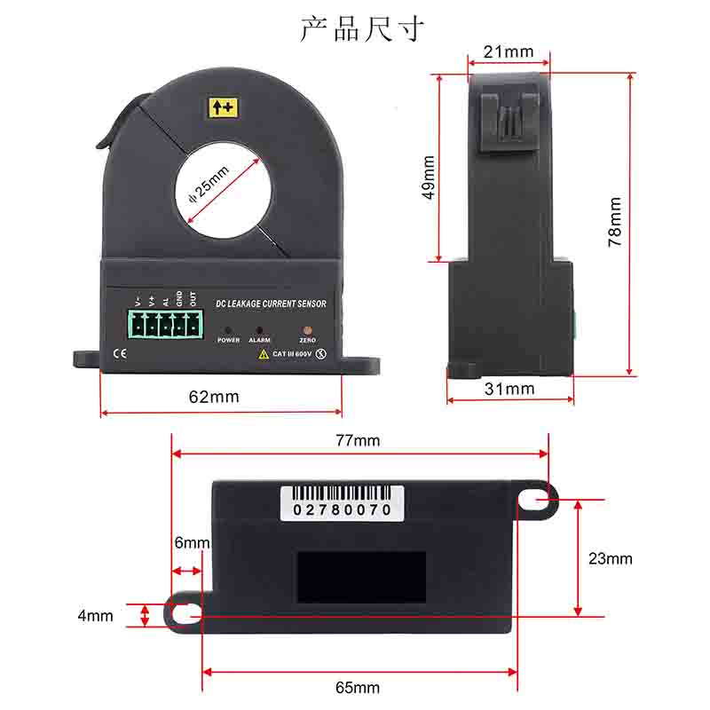 ETCR025KD | ![]() | 量程:0.0mA~100mA DC 精度等级:3.0 工作频率:DC | 50mV/1mA | Ф25mm | 78mm×82mm×31mm | 109g |